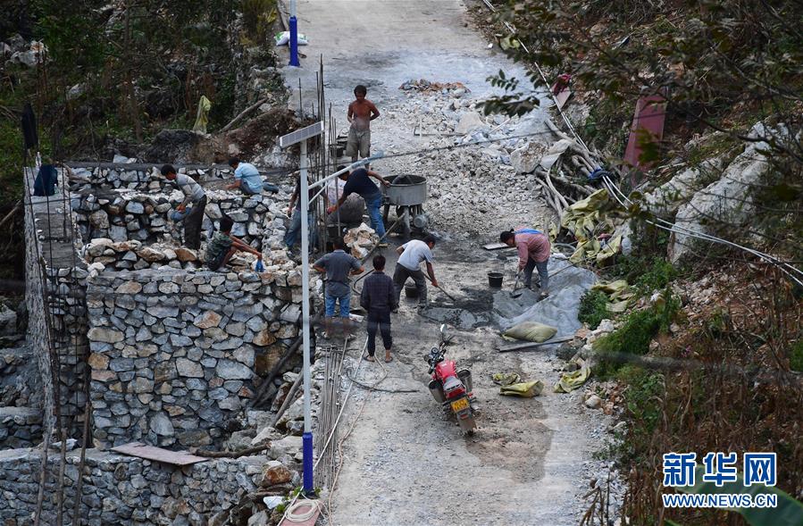 在广西大化瑶族自治县板升乡八好村,村民在进行危旧房改造(11月12日摄)。新华社记者 黄孝邦 摄