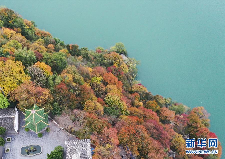 12月21日无人机拍摄的白帝城及周边景象。 白帝城位于重庆市奉节县的白帝山上,是长江三峡之一——瞿塘峡的起点。寒冬时节,白帝城一带呈现出秀美景象。 新华社记者 王全超 摄