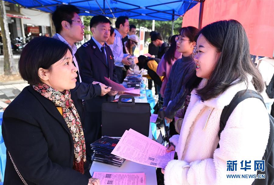 12月21日,福州市闽侯医疗保障局工作人员何炳煊(左)在给福建师大法学院学生张珣(右)介绍大学生医保参保方式、医保待遇优势等相关政策。 当日,为了做好大学生医保的参保对象、参保方式、医保待遇优势等相关政策的宣传,推进大学生医保缴费工作,福建省闽侯县医保、税务部门工作人员深入位于福州大学城的福建师大等高校开展大学生医保参保征缴等政策宣传,受到高校学生的欢迎。 新华社记者林善传摄