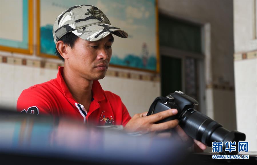 海南清澜港省级自然保护区护林员吕诗阳在保护区内的办公室里查看自己拍摄的照片(12月17日摄)。 吕诗阳2012年来到保护区工作,目前他的主要工作是对保护区内的动植物进行巡护、监测。他在工作中对红树林产生了浓厚的兴趣,不断学习相关知识。通过他的不懈努力,周边村民也逐渐意识到红树林的重要性,对红树林的保护也非常积极。新华社记者杨冠宇摄