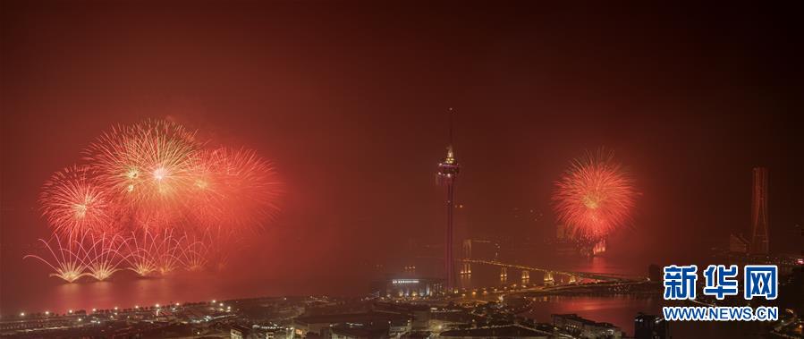 12月22日,烟花在澳门上空绽放。 当晚,澳门与珠海首次联合举行烟花汇演,庆祝澳门回归20周年。 新华社记者 吕小炜 摄