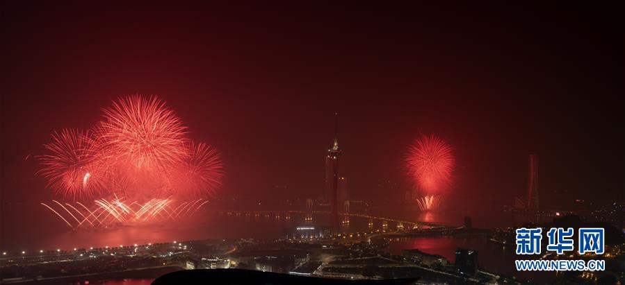 12月22日,烟花在澳门上空绽放。 当晚,澳门与珠海首次联合举行烟花汇演,庆祝澳门回归祖国20周年。 新华社记者 吕小炜 摄