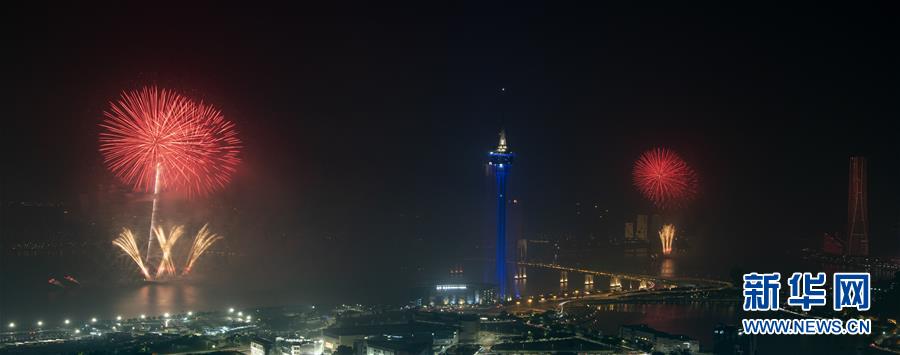 12月22日,烟花在澳门上空绽放。 当晚,澳门与珠海首次联合举行烟花汇演,庆祝澳门回归祖国20周年。 新华社记者 吕小炜 摄