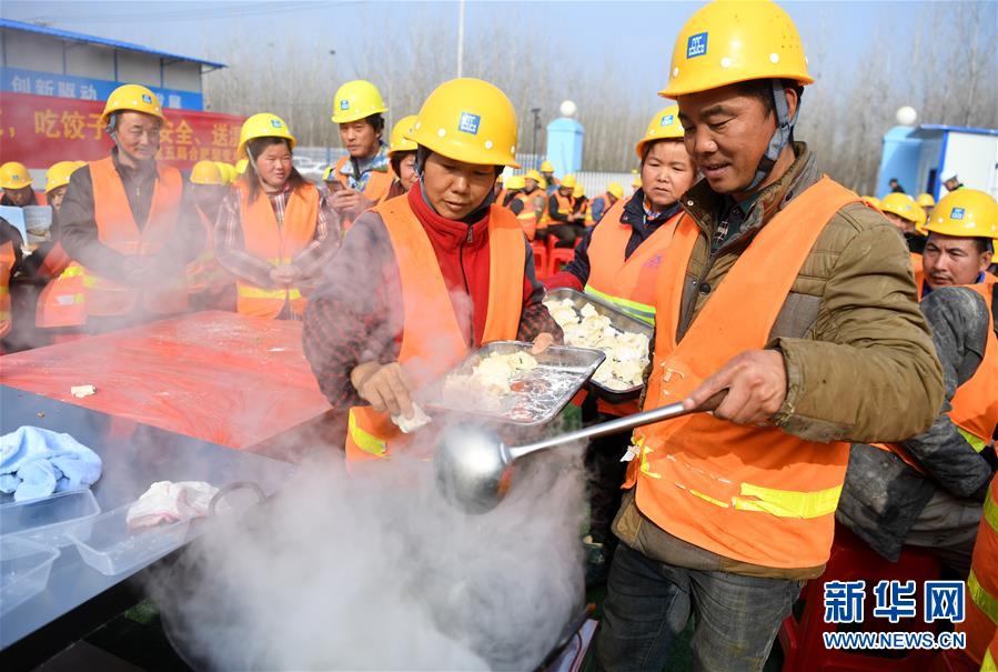 12月22日,农民工在合肥聚变堆项目工地上煮饺子。 当日是冬至节气,中建五局安徽公司皖中分公司合肥聚变堆项目工地组织农民工一起包饺子,感受冬日别样的温暖。 新华社记者刘军喜摄