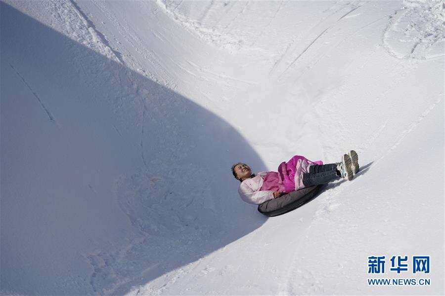 12月22日,在吉林延边州安图县奶头山村,一名游客在滑雪场里感受冰雪的乐趣。 新华社记者 沈伯韩 摄