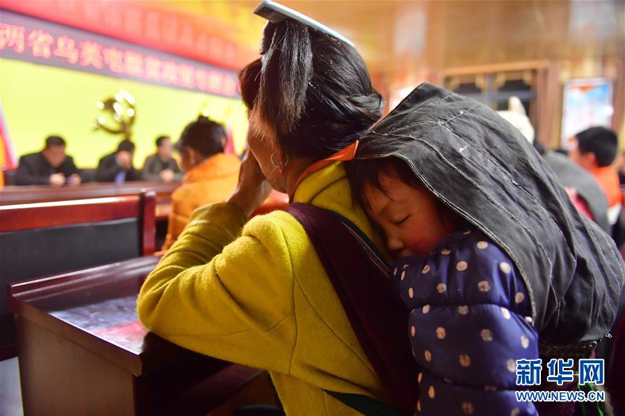 一名妇女背着小孩参加乌英苗寨脱贫产业会议(3月14日摄)。 新华社记者 黄孝邦 摄
