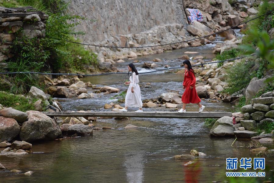 两名女孩从乌英苗寨的乌英河桥上走过(9月2日摄)。 新华社记者 黄孝邦 摄