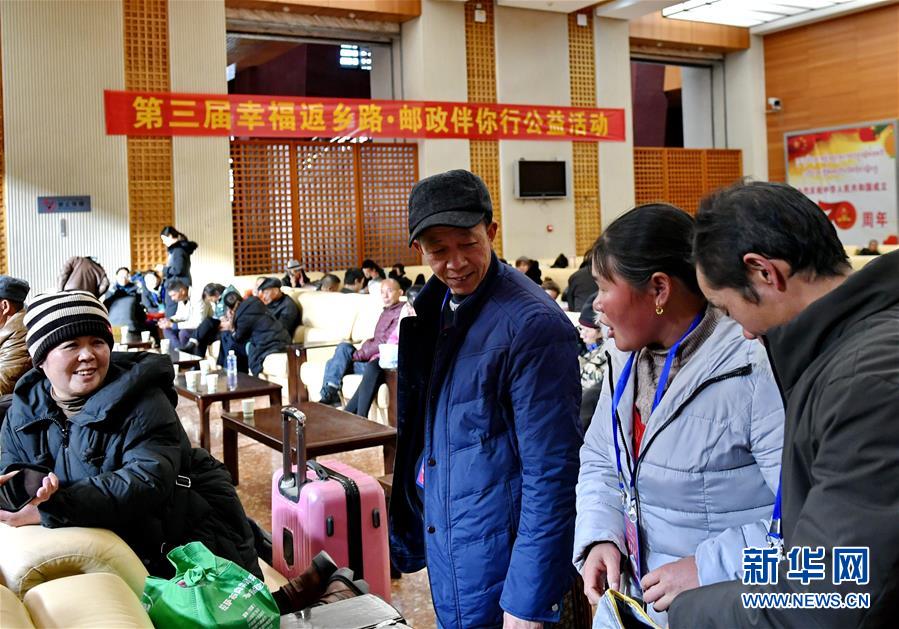 12月23日,受助务工人员在拉萨火车站返乡人员休息区交流。当日,由中国邮政集团公司西藏自治区分公司和青藏铁路公司拉萨站共同组织的第三届“幸福返乡路·邮政伴你行”免费赠送火车票公益活动在拉萨火车站举行。中国邮政集团公司西藏自治区分公司出资20余万元购买12月23日至12月26日拉萨至成都、重庆、西宁、兰州方向共计436张火车票,免费赠送给西藏外来务工人员。青藏铁路公司拉萨站为受助务工人员设置专用安检通道和候车专区。 新华社记者 张汝锋 摄