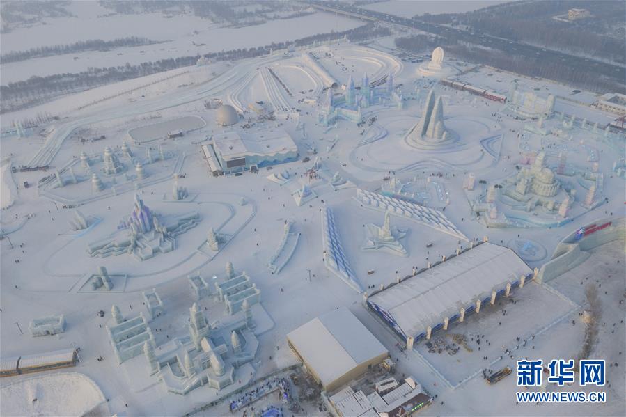 这是第二十一届哈尔滨冰雪大世界园区(12月23日无人机拍摄)。12月23日,以“冰雪共融 欢乐同行”为主题的第二十一届哈尔滨冰雪大世界正式开园。新华社发(谢剑飞摄)