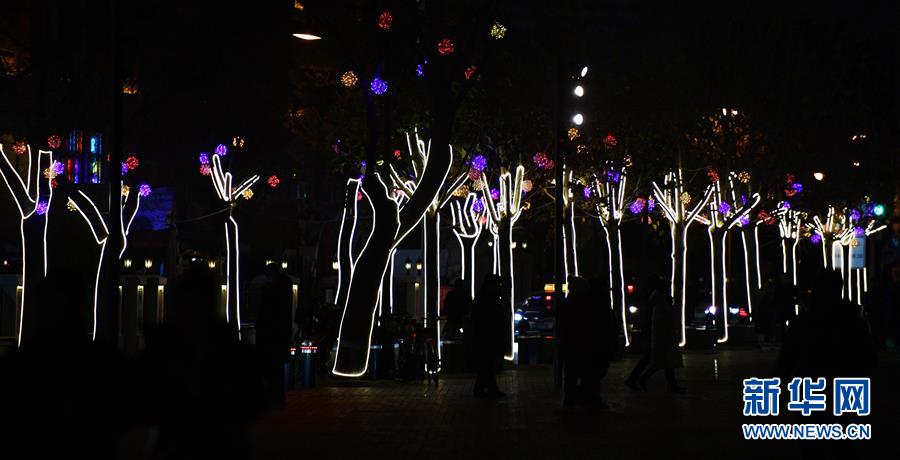 12月25日拍摄的民园广场外一景。 冬日夜晚,天津市和平区五大道的民园广场灯光璀璨,游人不绝。2019年,和平区以民园广场为重点着力打造五大道市级夜间经济示范街区,不断完善“吃、住、行、游、购、娱”等多种业态,让市民及游客体会夜游的乐趣。 新华社记者 李然 摄
