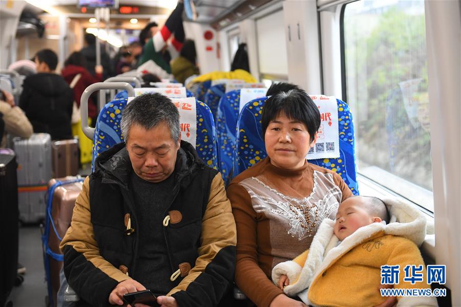12月26日,乘客乘坐从长沙开往咸丰的C8052次列车。 当日,黔张常铁路正式通车。这条西起重庆黔江区,途经湖北,东至湖南常德的铁路,全长330余公里,运营时速200公里。 新华社记者 陈泽国 摄