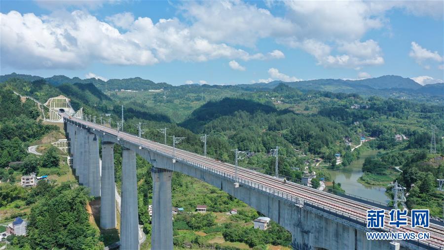 这是黔张常铁路位于湖南省龙山县境内的西湖冲特大桥(6月13日无人机拍摄)。 当日,黔张常铁路正式通车。这条西起重庆黔江区,途经湖北,东至湖南常德的铁路,全长330余公里,运营时速200公里。 新华社发(丁洋 摄)