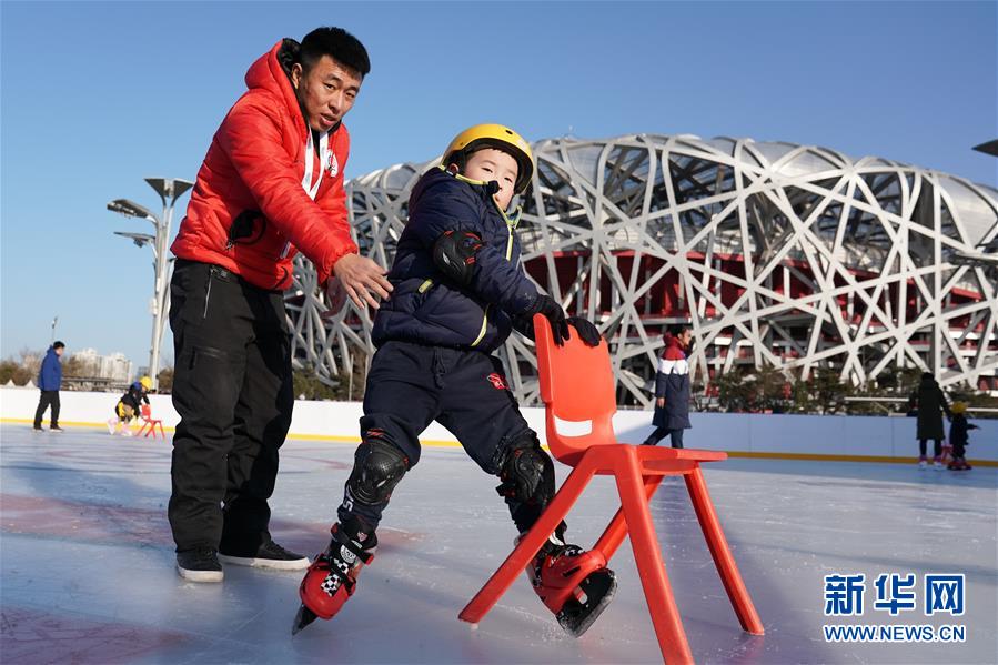 12月26日,一位小朋友(右)在北京奥林匹克中心区体验滑冰乐趣。 当日,第二届“相约2022”冰雪文化节在北京奥林匹克中心区开幕,活动将持续到2020年2月8日。据悉,本届冰雪文化节秉持“让奥林匹克点亮青年梦想,让冬季运动融入亿万民众,让奥运盛会惠及发展进步,让世界更加相知相融”的愿景,联动双奥场馆“鸟巢”“水立方”及庆典广场,通过文化推广、科技展示、冰雪体验、公益活动等方式,将中国文化、冬季体育和奥林匹克精神有机结合,打造独具冬奥特色、全民参与的冰雪主题文化活动平台,为2022年北京冬奥会预热。 新华社记者 鞠焕宗 摄