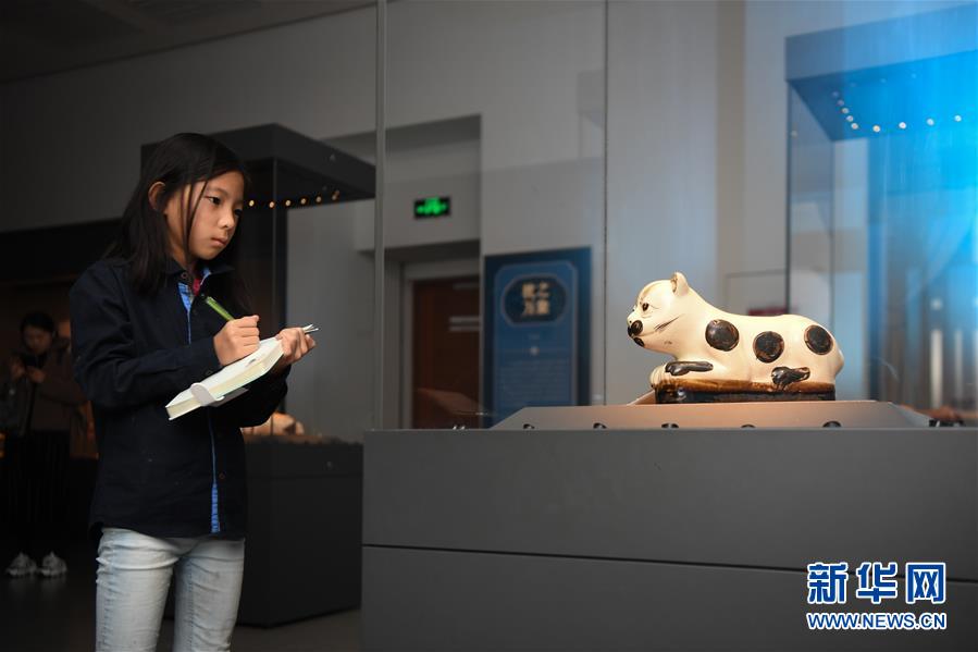 12月28日,一名小朋友在长沙博物馆“千年梦华——中国历代枕文物特展”上临摹枕文物。新华社记者 薛宇舸 摄
