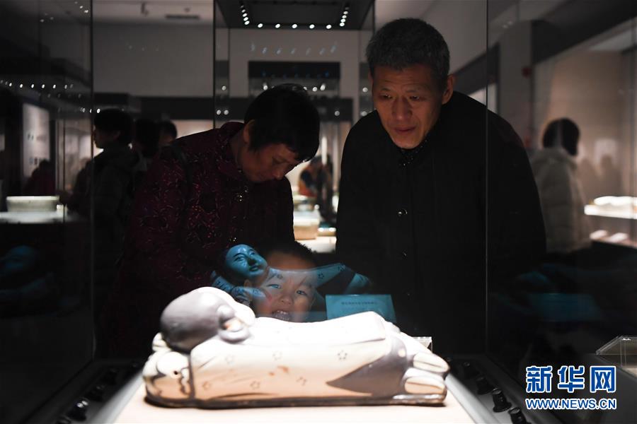 12月28日,参观者在长沙博物馆“千年梦华——中国历代枕文物特展”上观赏枕文物。新华社记者 薛宇舸 摄