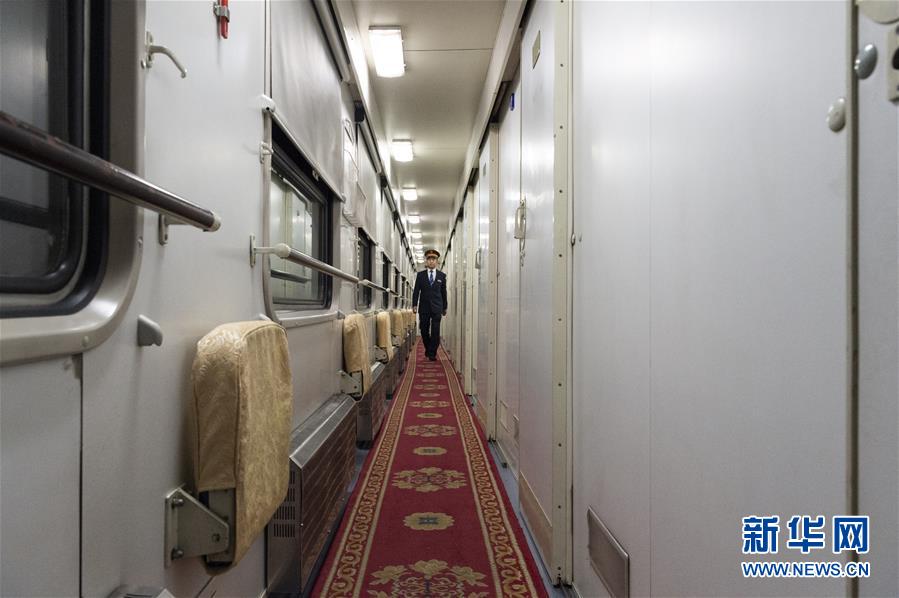12月27日,王轩在K7065次列车上巡视。新华社发(谢剑飞 摄)