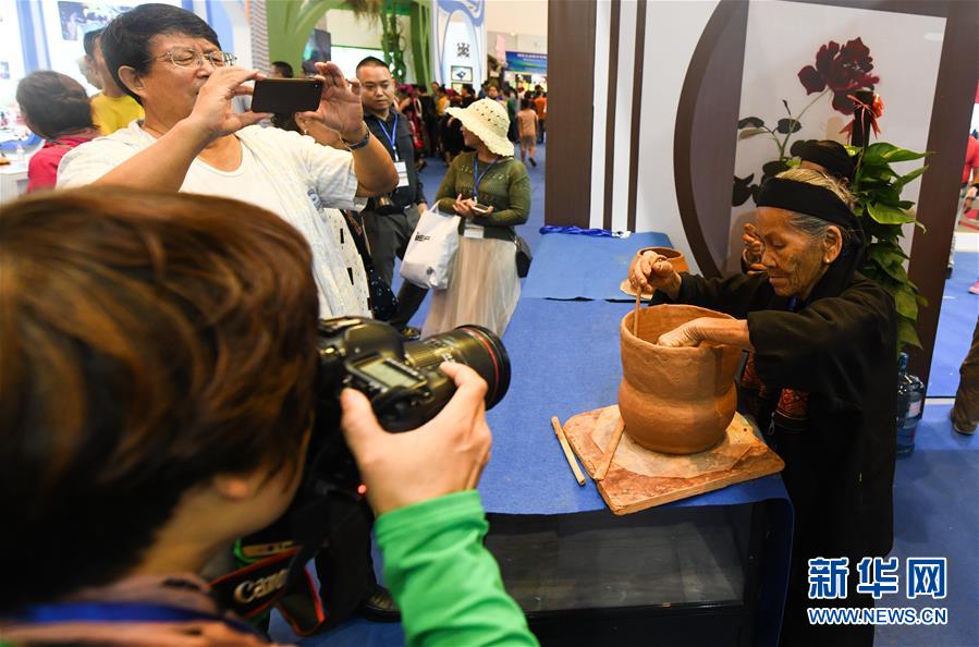 12月28日,观众在现场拍摄观看黎家制陶展示。 当日,2019第四届三亚国际文化产业博览交易会在海南三亚开幕。据了解,本次展会邀请了40个国家和地区的文化企业参展,展出近3万种展品,还将举办“夜间文博会”、高峰论坛、文创设计大赛等活动。 新华社记者 杨冠宇 摄