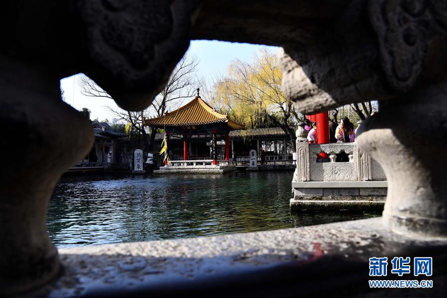 12月28日,游客在趵突泉边赏泉。 时值冬日,被誉为“天下第一泉”的山东济南趵突泉持续喷涌,吸引众多游客前来观赏。据了解,自2003年9月6日复涌至今,趵突泉已实现16年连续喷涌。 新华社记者 尹绪宝 摄
