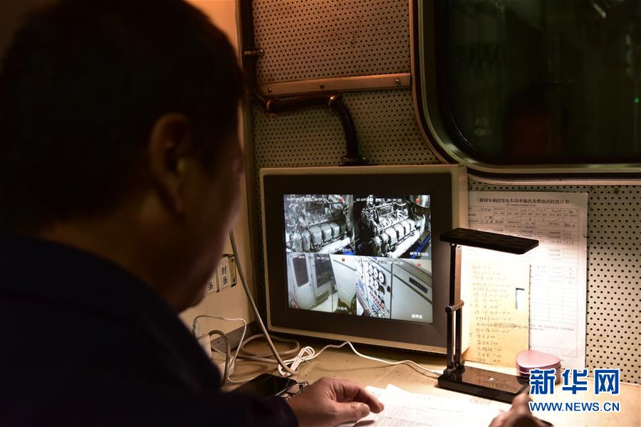 12月27日晚,从哈尔滨开往漠河的K7039次列车上,乘务员通过监视器检查空调发电车运行状况,以保证列车供电、供暖。新华社记者 杨思琪 摄