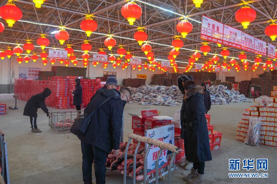 12月27日,在查干湖渔场超市,消费者选购查干湖鱼。新华社记者 张楠 摄