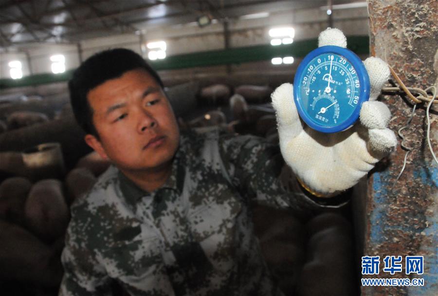 12月28日,内蒙古巴彦淖尔市临河区旭光村养殖户张权在猪舍展示温湿度计。新华社记者 李云平 摄