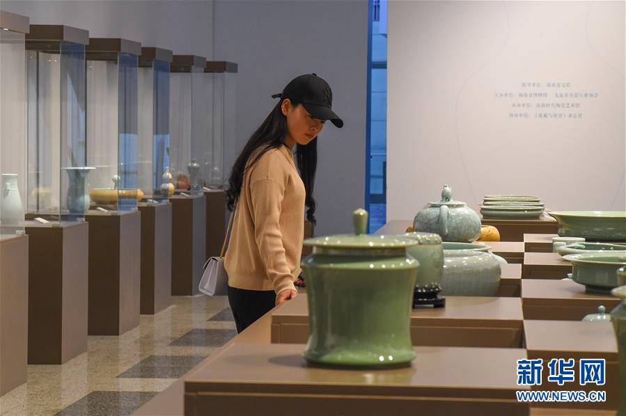 12月28日,市民在海南省博物馆观看当代龙泉青瓷大师作品展。新华社记者 蒲晓旭 摄