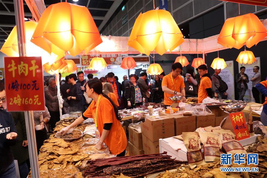 12月28日,游客在美食节上的牛肉干摊位前选购。新华社记者 吴晓初 摄