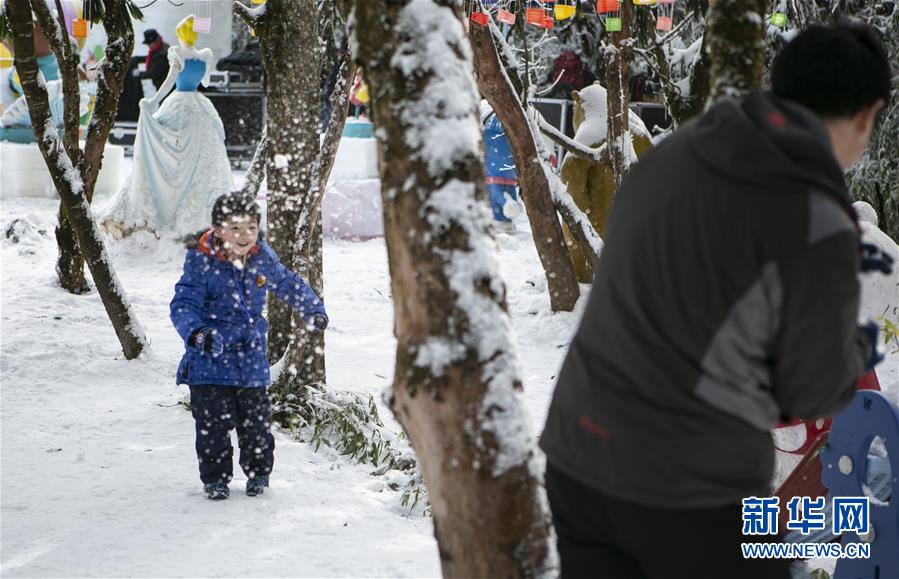 12月28日,小朋友在峨眉山风景名胜区打雪仗。新华社记者 李梦馨 摄