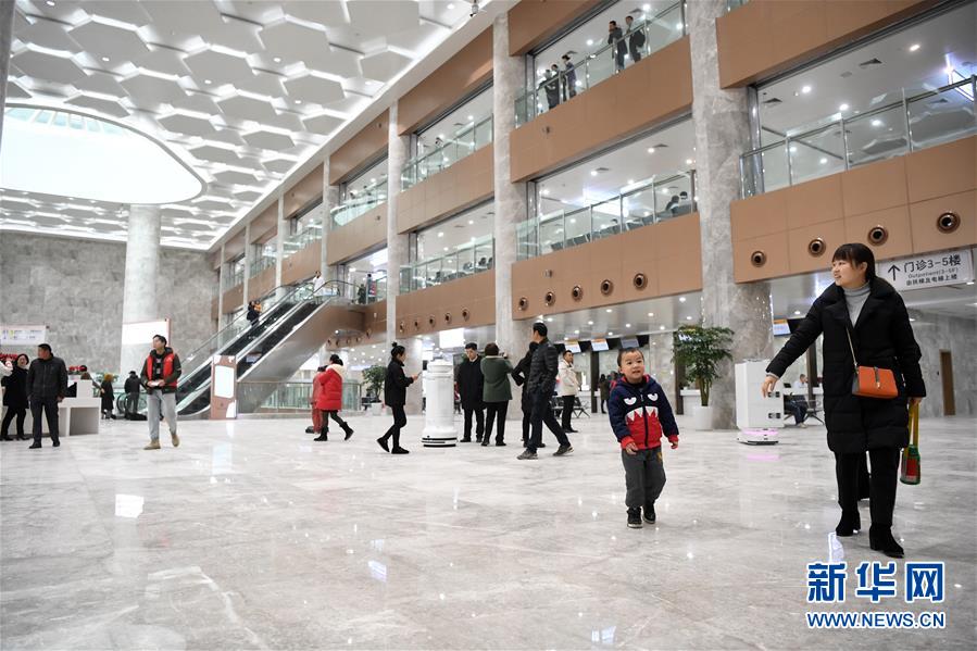 12月29日开诊首日拍摄的医院大堂。当日,中国科学院大学重庆医院(重庆市人民医院)两江新院举行开诊仪式,投入试运行。两江新院于2015年8月动工,占地141亩,总规划床位1480张,预计2020年3月正式运行。新华社记者 唐奕 摄