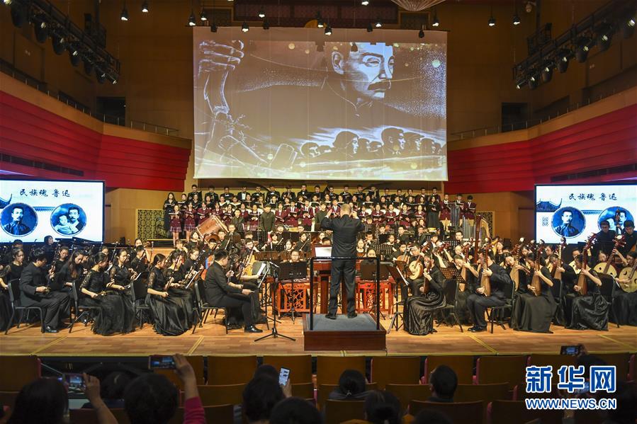 12月29日拍摄的民族交响音诗《民族魂 鲁迅》演出现场。 当日,一部由北京三十五中创作的民族交响音诗《民族魂 鲁迅》在北京三十五中金帆音乐厅上演。 新华社记者李晓果摄