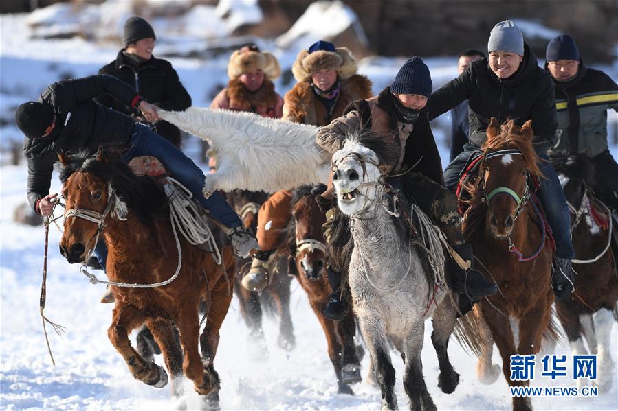 12月29日,当地居民表演叼羊。 当日,第二届萨吾尔冬牧文化旅游节在新疆吉木乃县草原石城景区开幕。 新华社记者沙达提摄