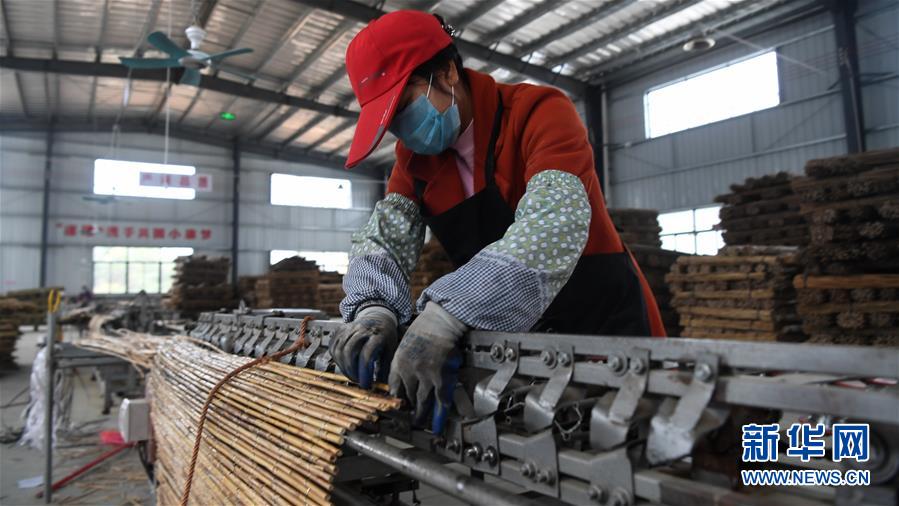 融安县一家竹木生产企业工人在制作竹篱笆(12月29日摄)。新华社记者 张爱林 摄