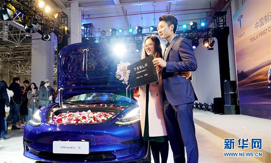 这是12月30日拍摄的中国制造Model3首批员工车主交付仪式现场。 新华社记者 方喆摄