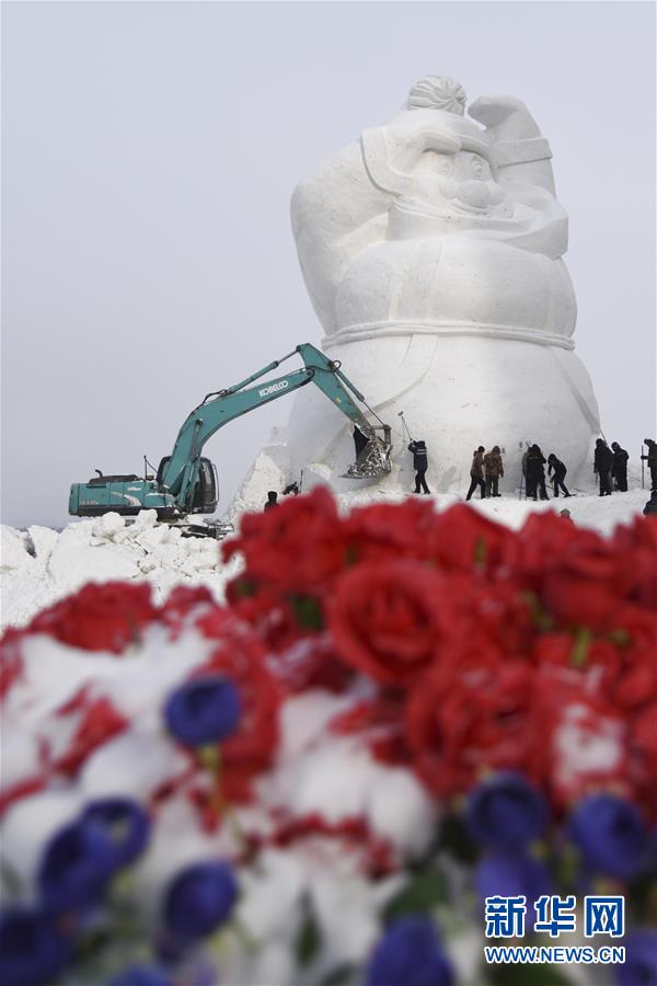 这是在哈尔滨松花江畔拍摄的巨型雪人(12月30日摄)。 今冬,黑龙江省哈尔滨市在市区内的松花江两岸堆砌雕塑了2020个雪人,以此迎接2020年。 新华社记者 李建平 摄