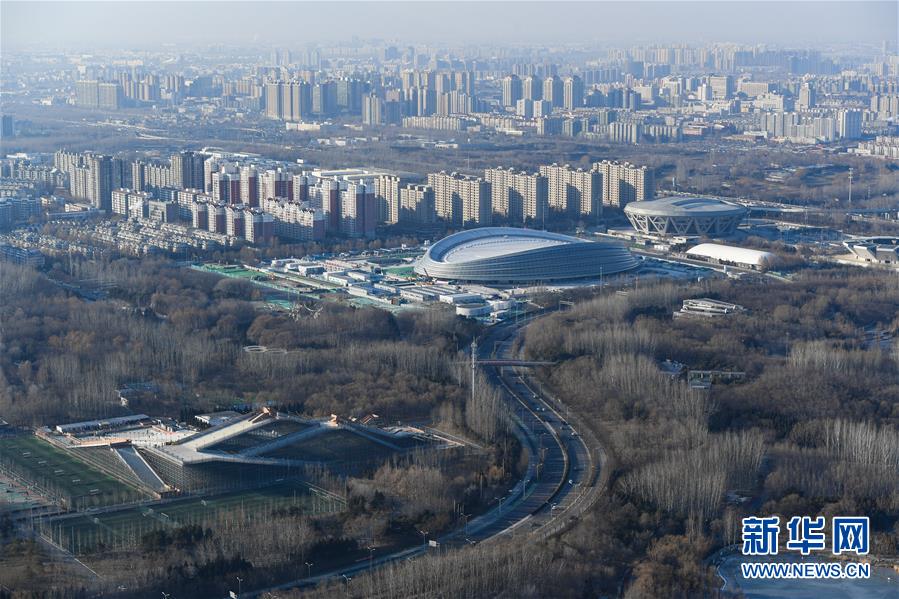 这是12月31日拍摄的实现封顶封围的国家速滑馆。 新华社记者鞠焕宗摄