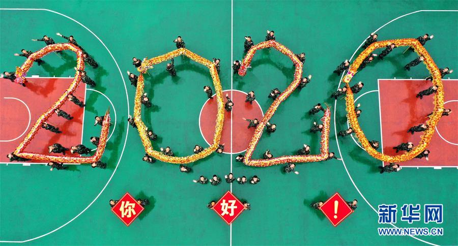12月31日,驻守深圳的武警广东总队执勤第三支队官兵舞动长龙辞旧迎新(无人机照片)。 新华社发(廖键 摄)