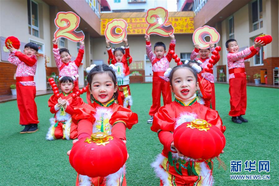 12月31日,四川省遂宁市兴子堂幼稚园的孩子们身穿节日服装,载歌载舞迎接新年的到来。 新华社发(刘昌松 摄)