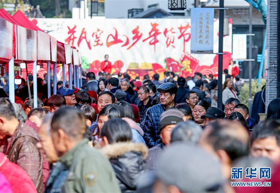 1月1日拍摄的瓶窑老街山乡年货节现场。 当日,浙江省杭州市余杭区瓶窑镇的瓶窑老街开启新年首场“山乡年货节”,近百家土特产商家进驻老街,现场有青鱼干、卤鸡卤鸭、新鲜蔬菜、香肠、年糕、腊肉等特色美食展销,还有大锅烹制毛笋干烧筒骨、炒二冬、活笋烧肉、石笋干红烧肉等以笋干为主料的瓶窑特色美食,各种传统年货营造出浓浓的年味,吸引当地百姓和外地游客前来感受新年的喜庆气氛。 新华社记者 徐昱 摄