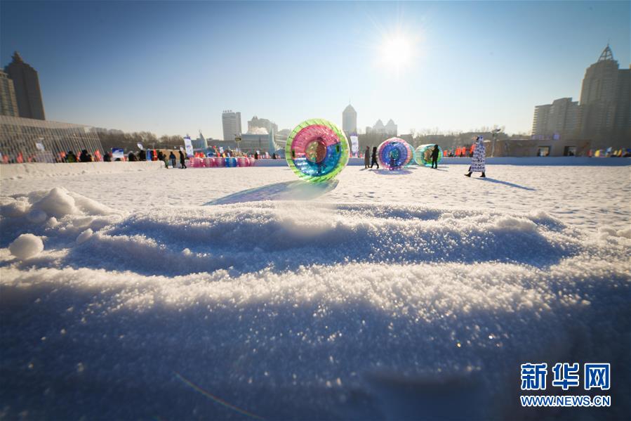 1月1日,市民和游客在哈尔滨松花江冰雪嘉年华园区游玩。新华社记者 王松 摄
