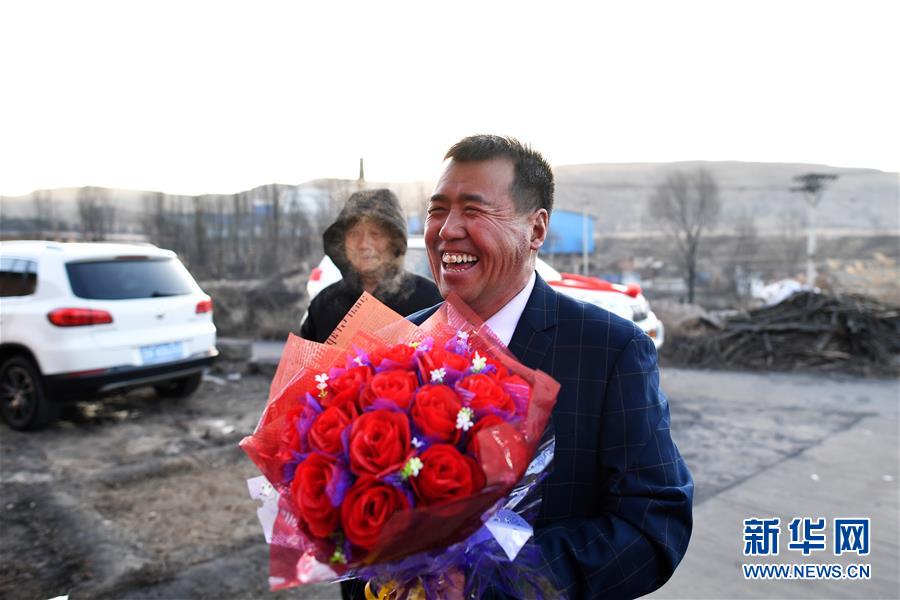 在和顺县李阳镇南李阳村,新郎马爱明来到新娘温丽芳的娘家接亲(2019年12月31日摄)。 农历腊月初六,是山西省和顺县李阳镇下石勒村45岁的马爱明娶媳妇的日子。 地处太行山区的下石勒村曾深陷贫困,“地下无资源、地上没产业”是这里的真实写照。2013年,村里638口人中有511口属贫困人口。村民在贫瘠的坡地上种的玉米、谷子等仅够糊口,外村女子都不愿嫁到这里。和村里多数人一样,贫困户马爱明不得不在农闲时出去打工补贴家用。东走走、西走走,马爱明没攒下钱,也没遇见合适的人,婚事一拖再拖,成了大龄“光棍”。 2013年以来,在国家强有力的政策帮扶和基层党组织的带领下,下石勒村以合作社的形式发展起肉牛养殖、双孢菇种植、万寿菊种植等集体产业。下石勒村经济有了起色,外出打工的村民纷纷回村。马爱明加入了村里的建筑队,闲时还到种植专业合作社打工,一年四季都有活干。加上土地流转的收入,马爱明一年能收入三万多元。2016年,下石勒村实现整村脱贫。 2019年,马爱明结识了在下石勒村肉鸡养殖专业合作社打工的李阳镇南李阳村村民温丽芳,马爱明的朴实、善良、勤劳打动了温丽芳,两人擦出了爱情的火花。 腊月初六这天,下石勒村锣鼓喧天,唢呐齐鸣。在乡亲们的见证下,马爱明手牵新娘,大声宣布:“我脱单了!我的幸福生活开始了!” 新华社记者 詹彦 摄