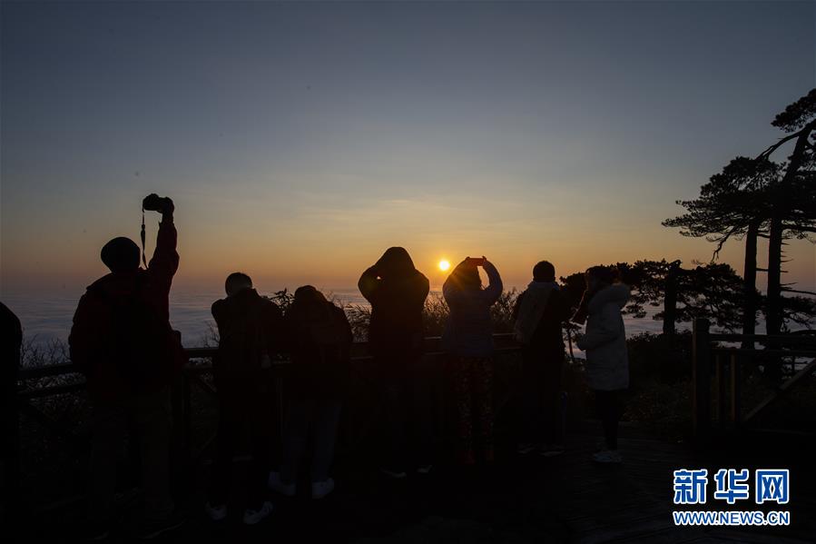 1月1日,游客在三清山拍摄日出。 当日是元旦,人们登上位于江西省上饶市的三清山,迎接新年的第一缕阳光。 新华社记者 张浩波 摄