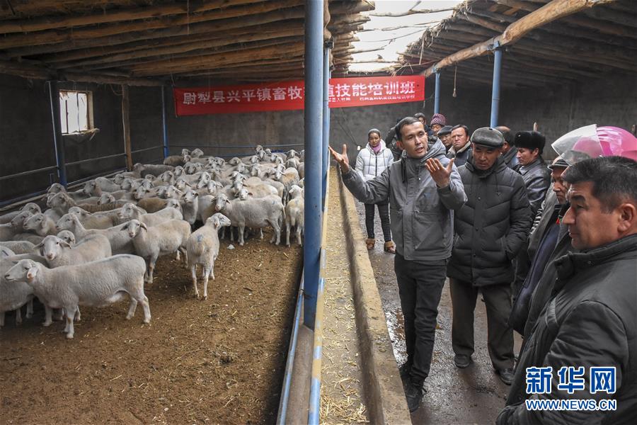 在尉犁县兴平镇昆其村,当地村民在参加畜牧养殖技能培训(2019年12月30日摄)。新华社记者 赵戈 摄