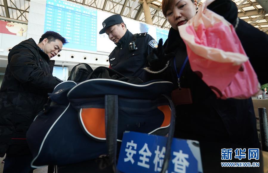 在南京火车站,凌正(中)在安检处执勤(2019年12月31日摄)。 随着春运脚步临近,“90后”铁警凌正和同事们越来越忙。 1991年出生的凌正,是南京铁路公安处南京站派出所的刑侦民警。2013年从河南大学毕业,通过考试加入人民警察队伍。初入警营,凌正明显感觉到自己的差距,潜心学习法律法规,增加知识储备;同时,他向身边的英模请教业务知识,不断提高执法水平和打击犯罪能力。多年来,凌正和同事们日复一日,以所为家,排查可疑人员,保护旅客生命财产安全。 从警以来,凌正和同事们累计抓获各类犯罪嫌疑人620名,破获刑事案件150多起,他多次立功,2017年荣获“全路优秀人民警察”称号。 新华社记者 季春鹏 摄