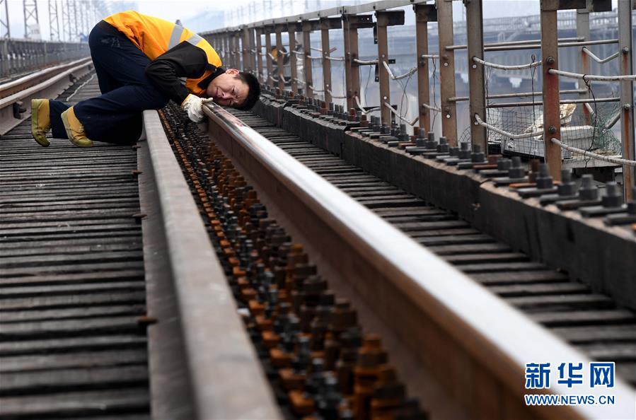 1月2日,顿麒对桥面线路状态进行检查。新华社记者 李安 摄