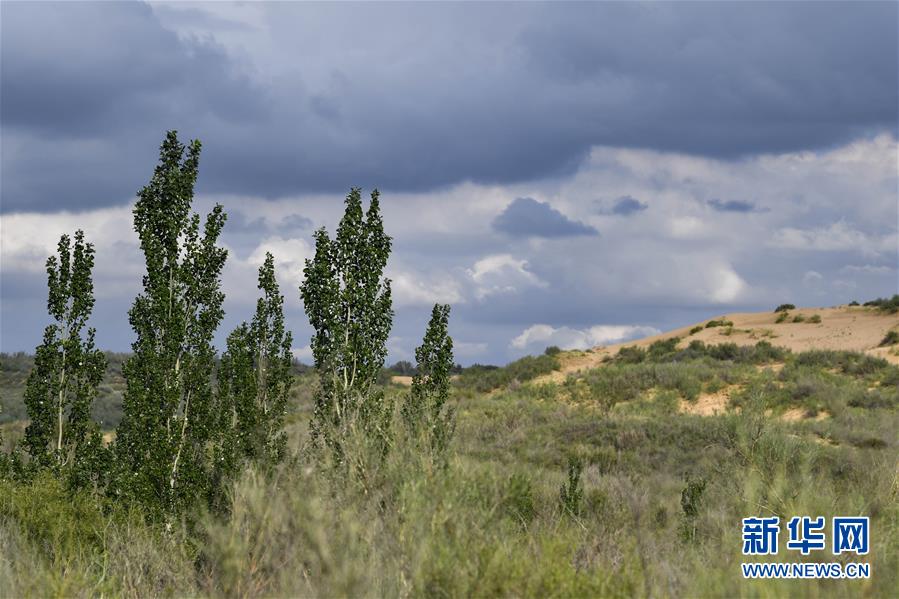 宁夏盐池县沙泉湾荒漠化综合治理示范项目区内,昔日的沙丘已被林草覆盖,焕发出新的生机(2019年7月17日摄)。新华社记者 冯开华 摄