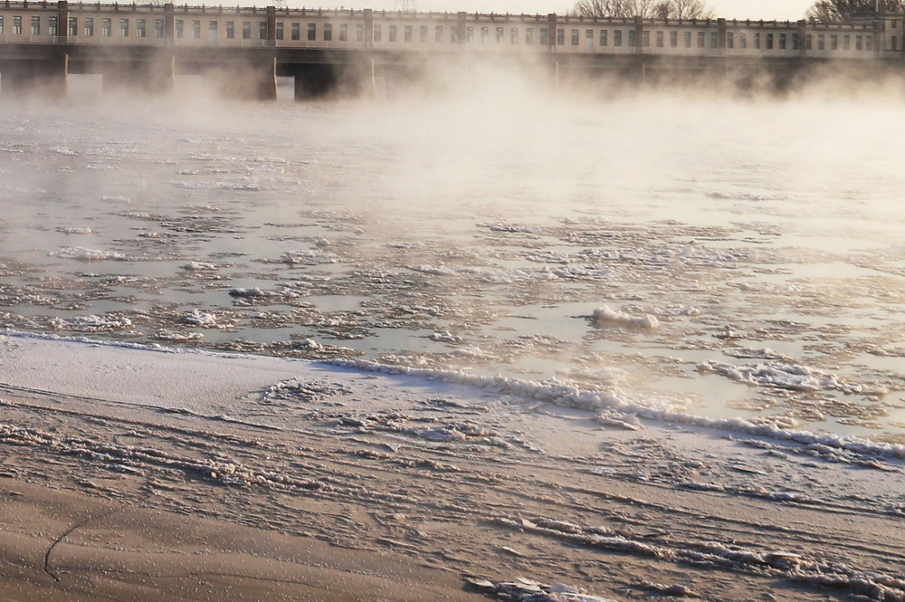 黄河三盛公水利枢纽库区出现“水煮黄河”景观(1月1日摄)。