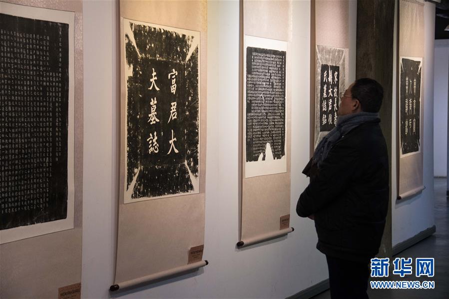 1月3日,观众在“书道圭臬——中原巨碑名志拓片展”上参观。新华社发(陈思汗 摄)