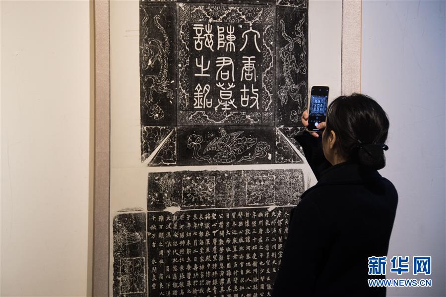 1月3日,观众在“书道圭臬——中原巨碑名志拓片展”上参观拍摄。新华社发(陈思汗 摄)