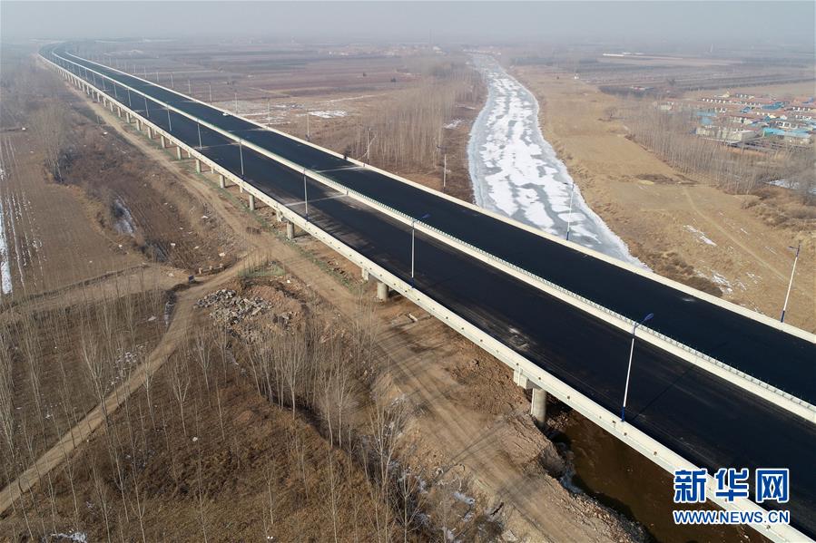 这是1月3日拍摄的北京大兴国际机场北线高速公路廊坊段龙河特大桥(无人机照片)。新华社记者 牟宇 摄