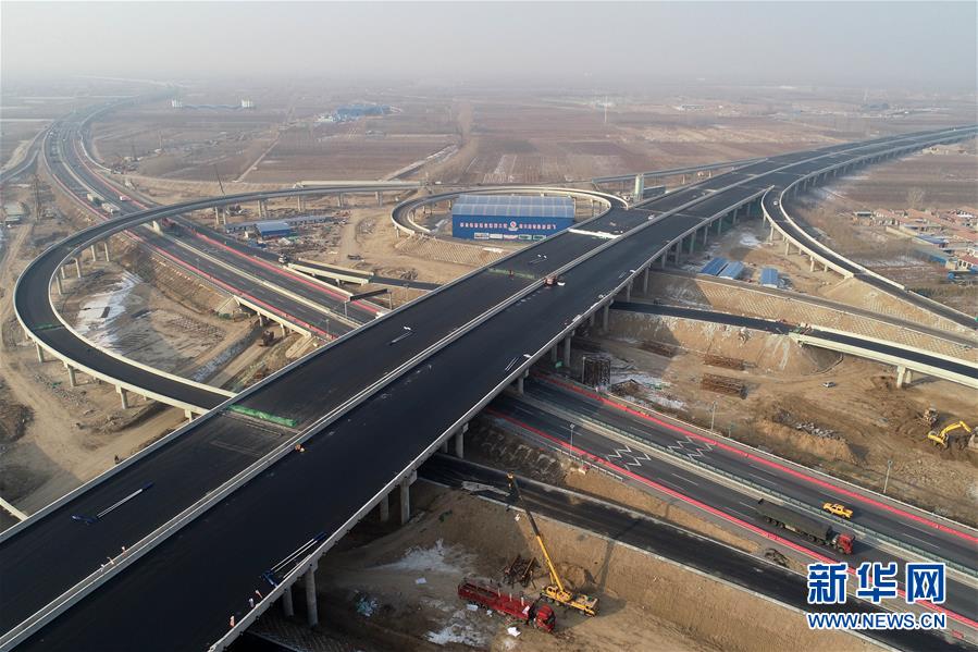 这是1月3日拍摄的北京大兴国际机场北线高速公路廊坊段王场互通枢纽(无人机照片)。新华社记者 牟宇 摄